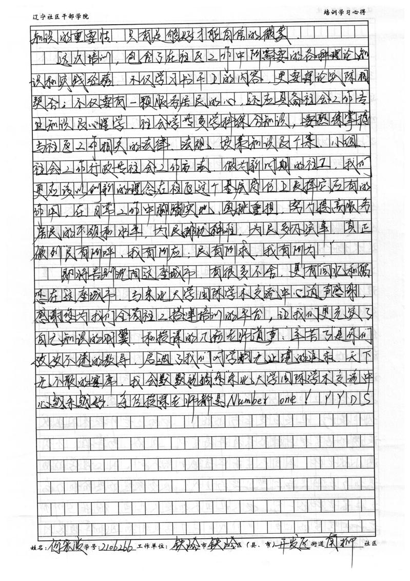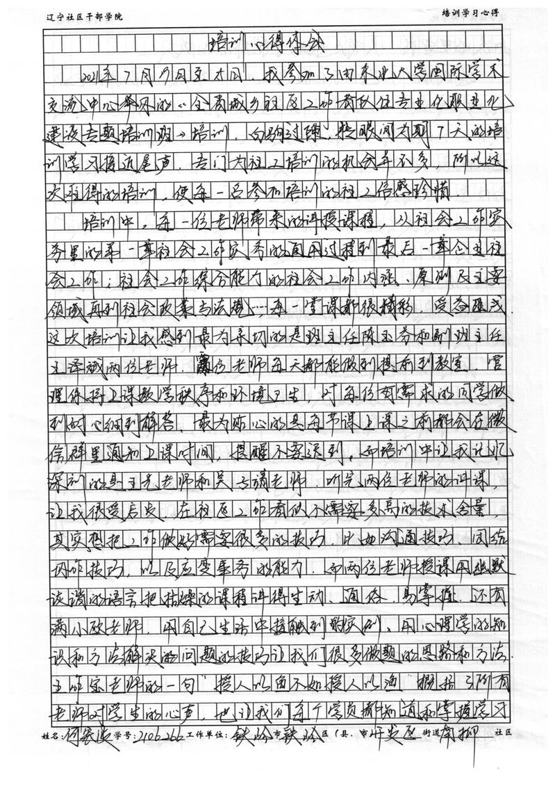 铁岭市开发区开发区街道南柳社区副主任何宏波培训学习心得