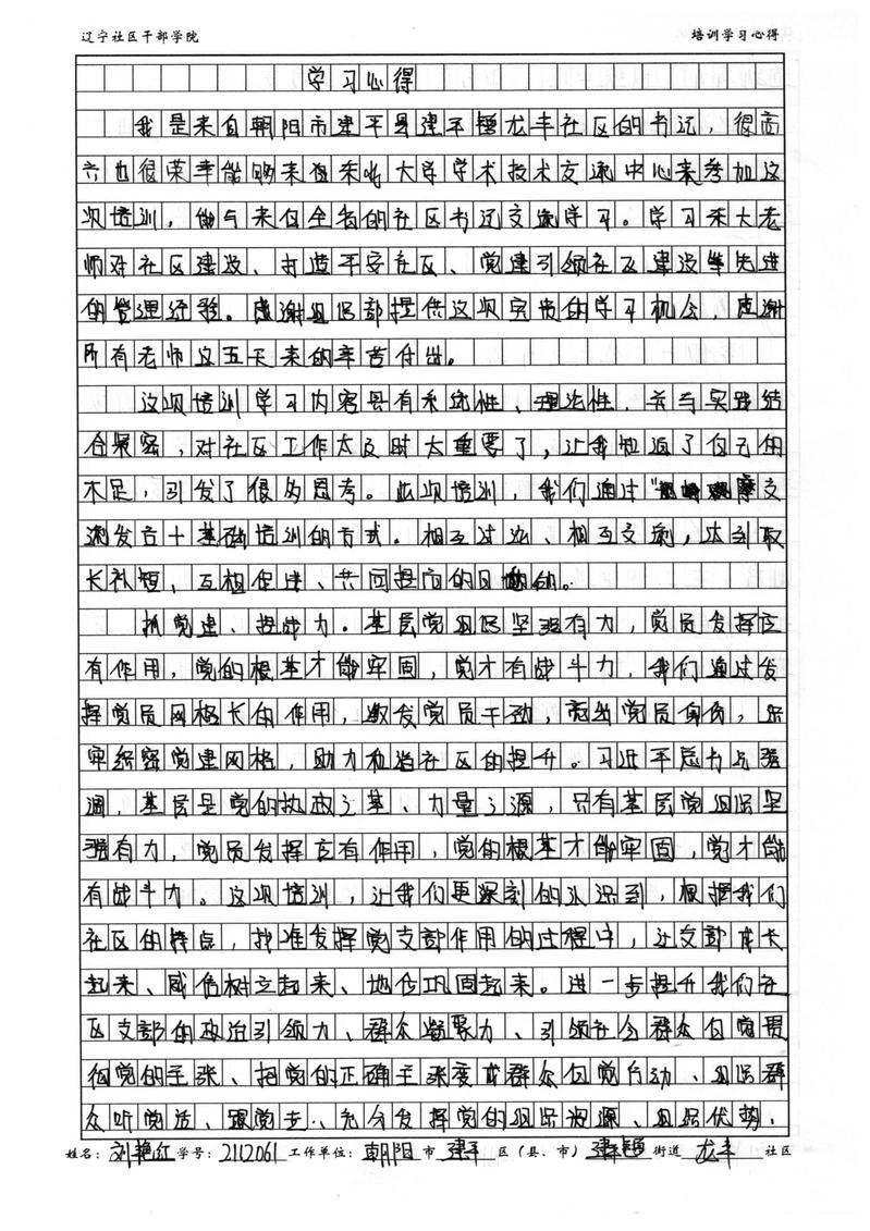 朝阳市建平县建平镇龙丰社区书记刘艳红学习心得