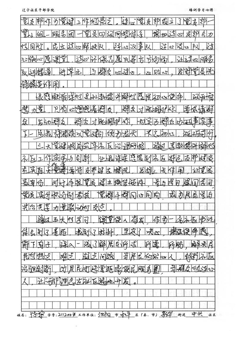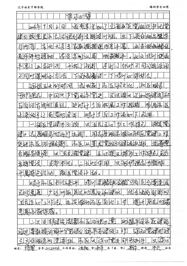 沈阳市和平区新华街道中兴社区书记陈黎学习心得