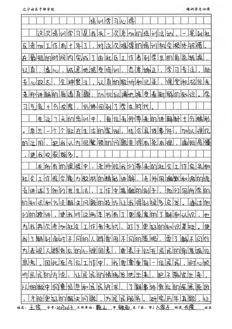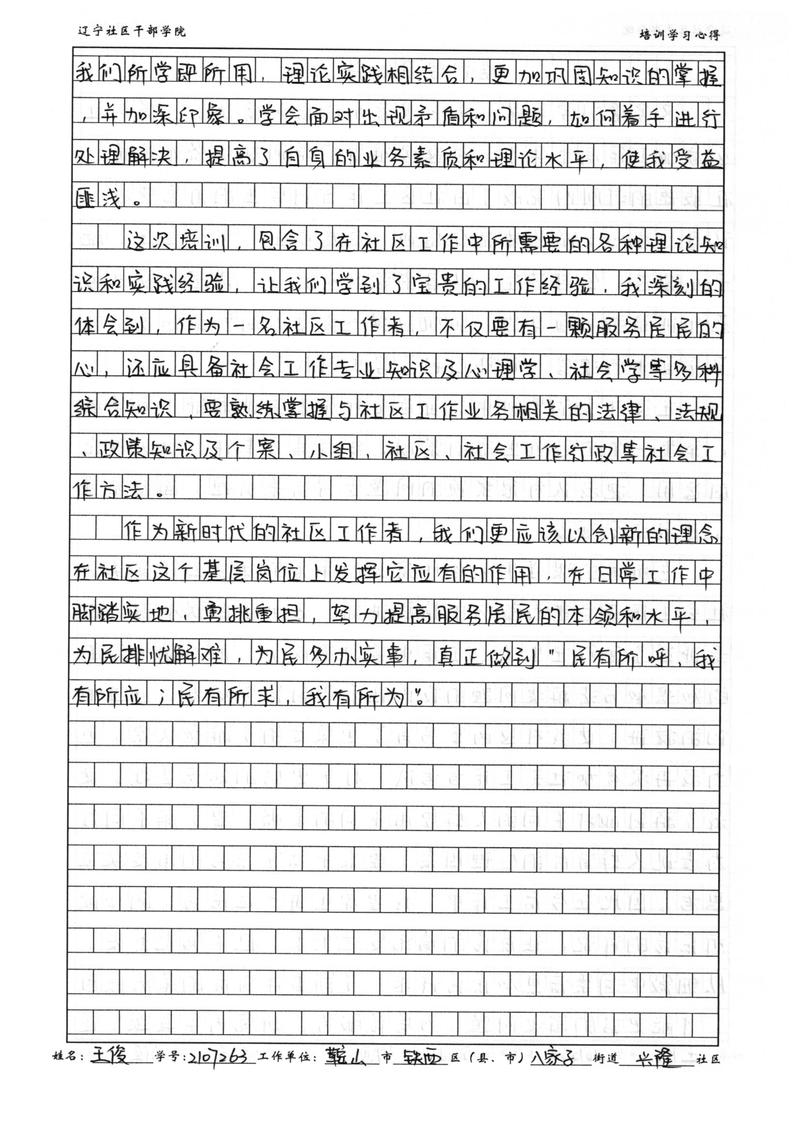 鞍山市铁西区八家子街道兴隆社区副书记王俊学习心得