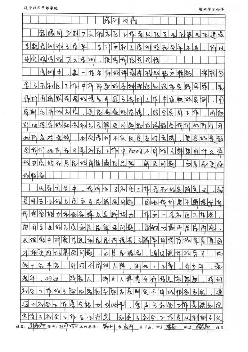 锦州市凌河区榴花街道榴花南社区副主任刘婷婷学习心得