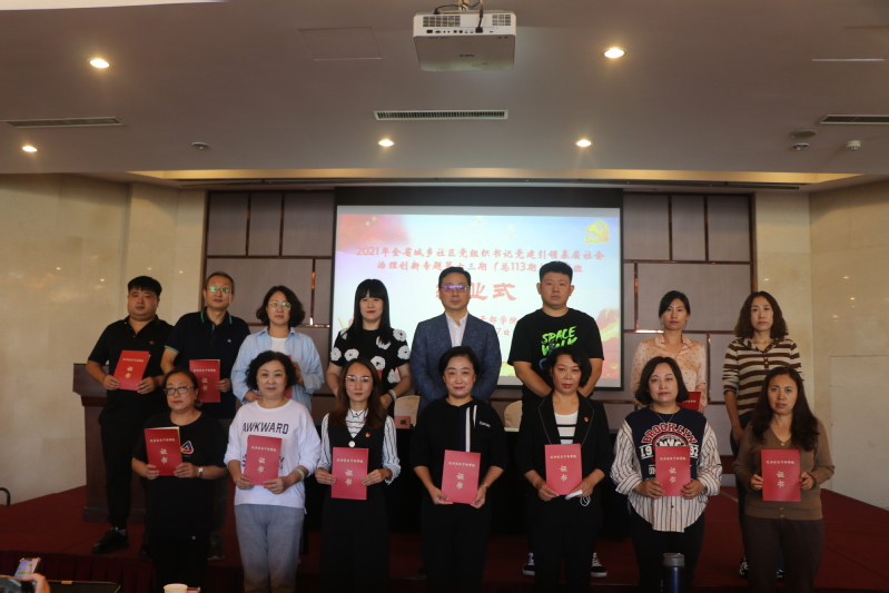 9月17日10:30,2021年全省城乡社区党组织书记党建引领基层社会治理创新专题培训班第十三期(总113期)培训班结业仪式在东北大学国际学术交流中心二楼香悦轩举行,辽宁社区干部学院副院长、东北大学文法学院院长张雷同志,辽宁社区干部学院培训部主任赵璇同志参加了本次结业仪式,仪式由赵璇同志主持。