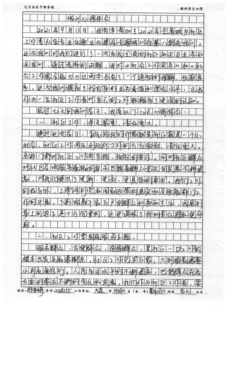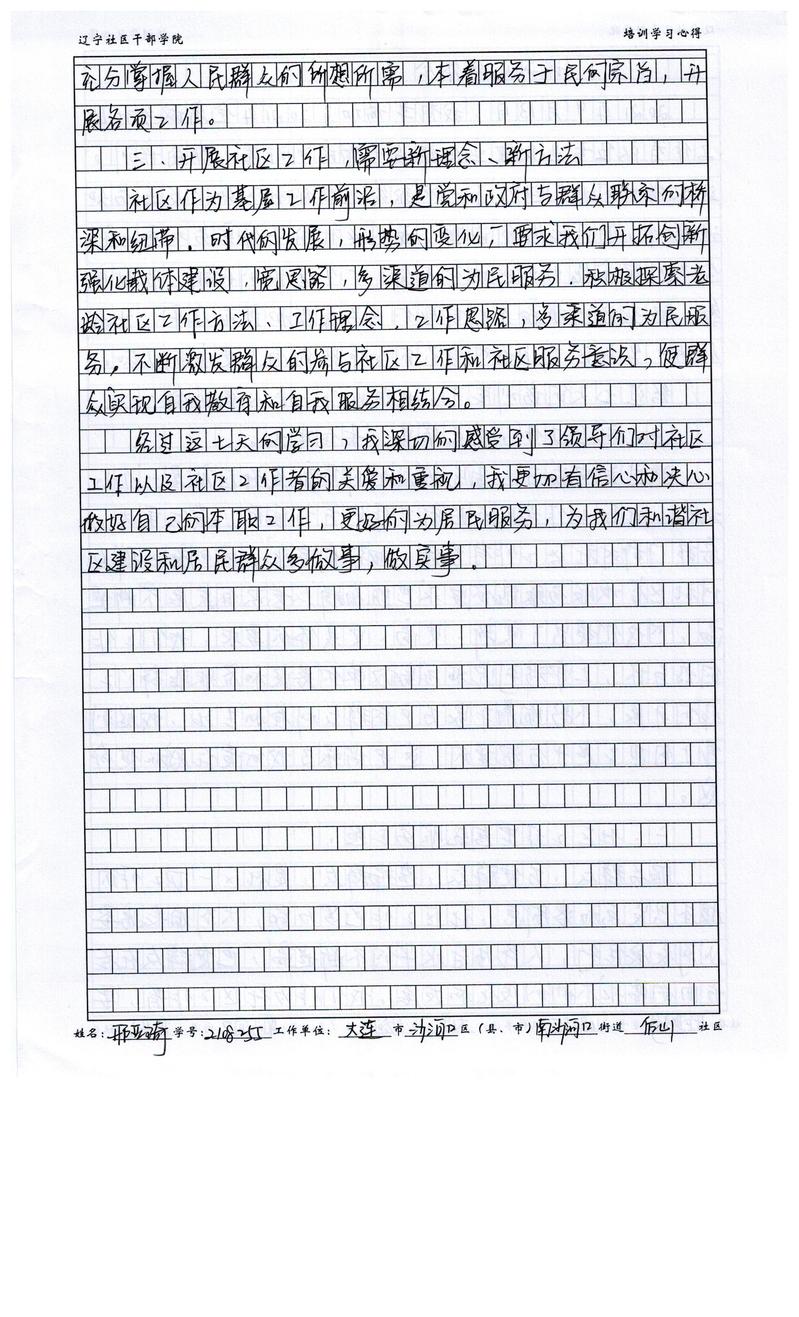 大连市沙河口区南沙河口街道后山社区邢亚琦培训学习心得
