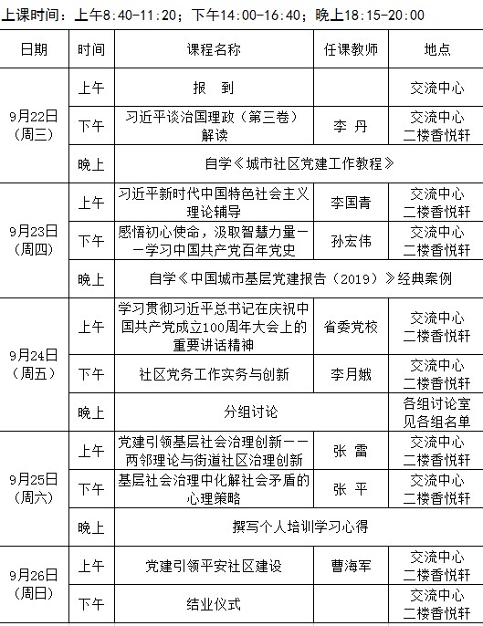 2021年全省城乡社区党组织书记党建引领基层社会治理创新专题第十四期(总114期)培训班课程 安排