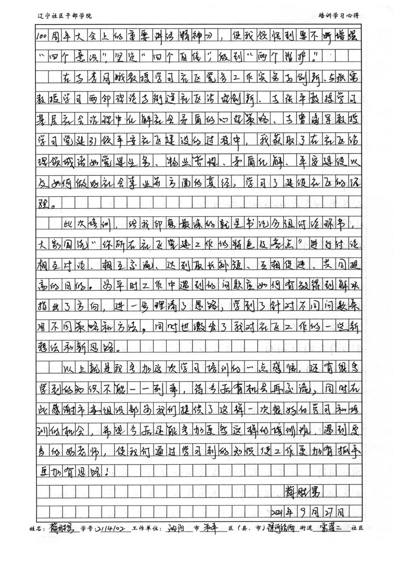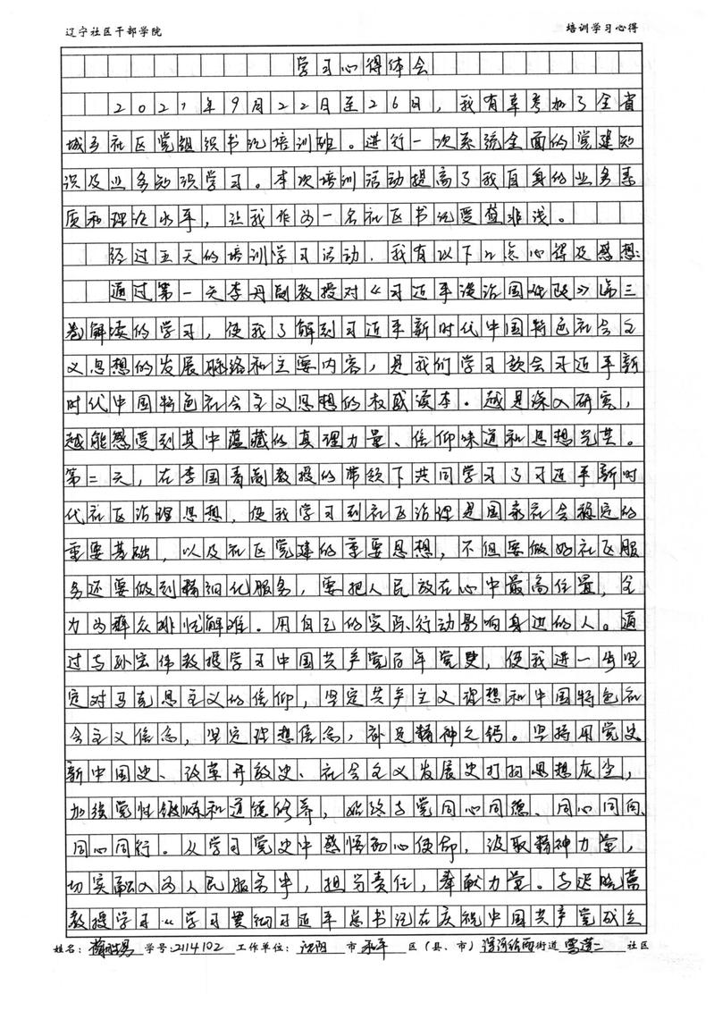 沈阳市和平区浑河站西街道雪莲二社区书记薛胜男学习心得