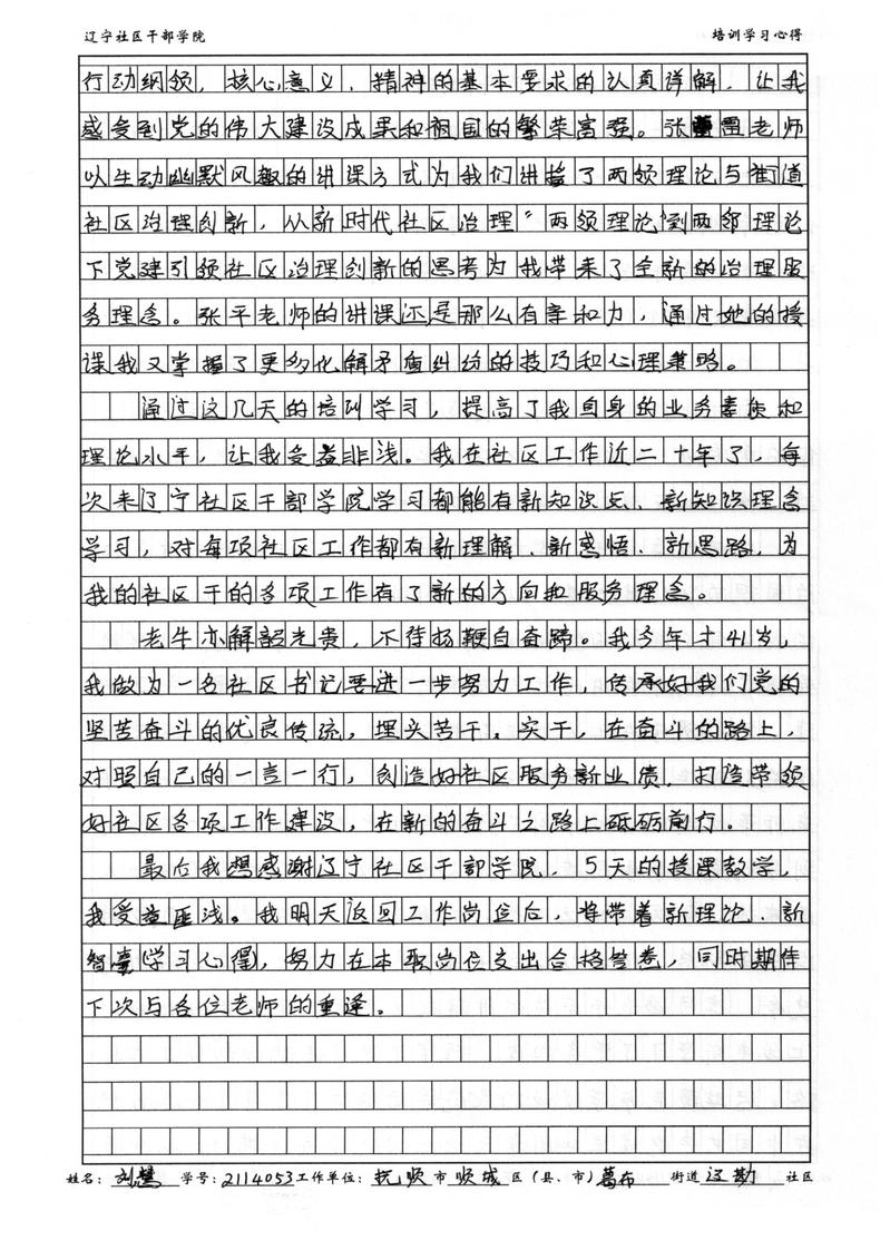 抚顺市顺城区葛布街道辽勘社区书记刘慧学习心得