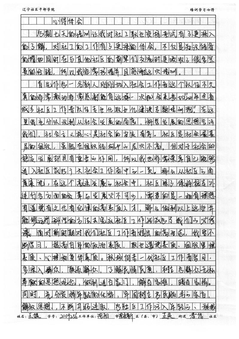 沈阳市沈北新区正良街道孝信社区社会工作者王媛学习心得