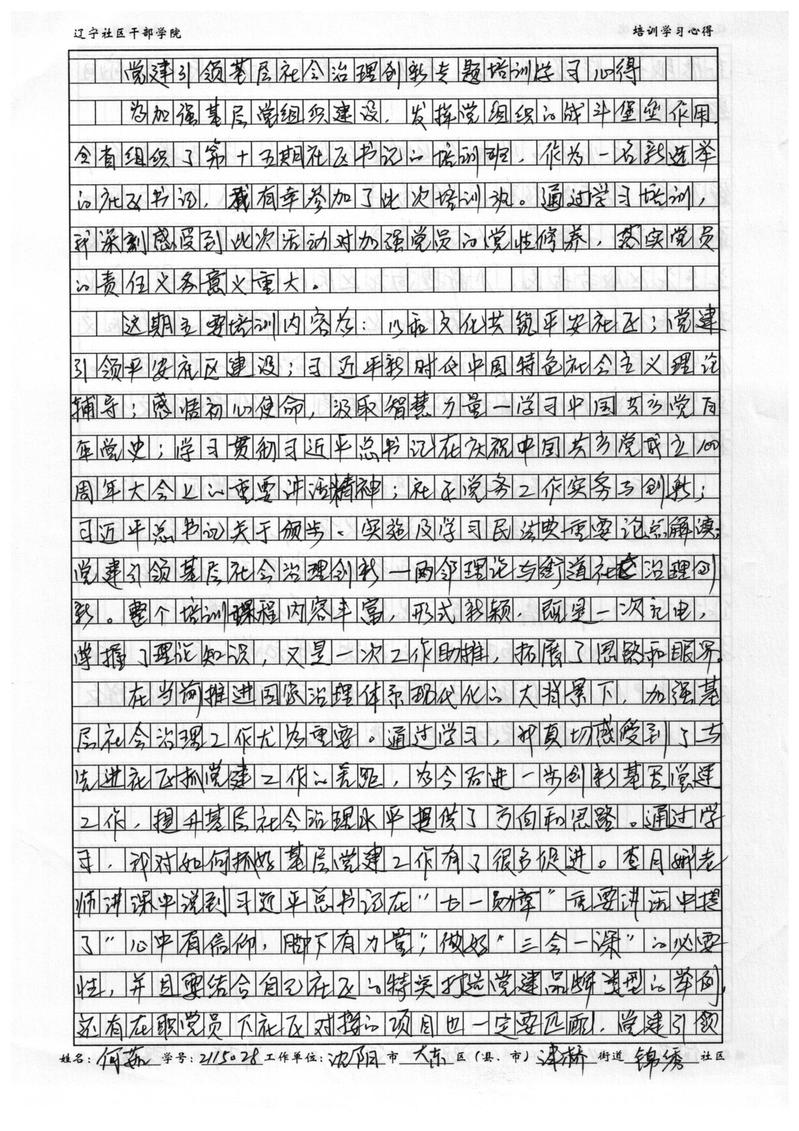 沈阳市大东区津桥街道锦绣社区书记何茹学习心得