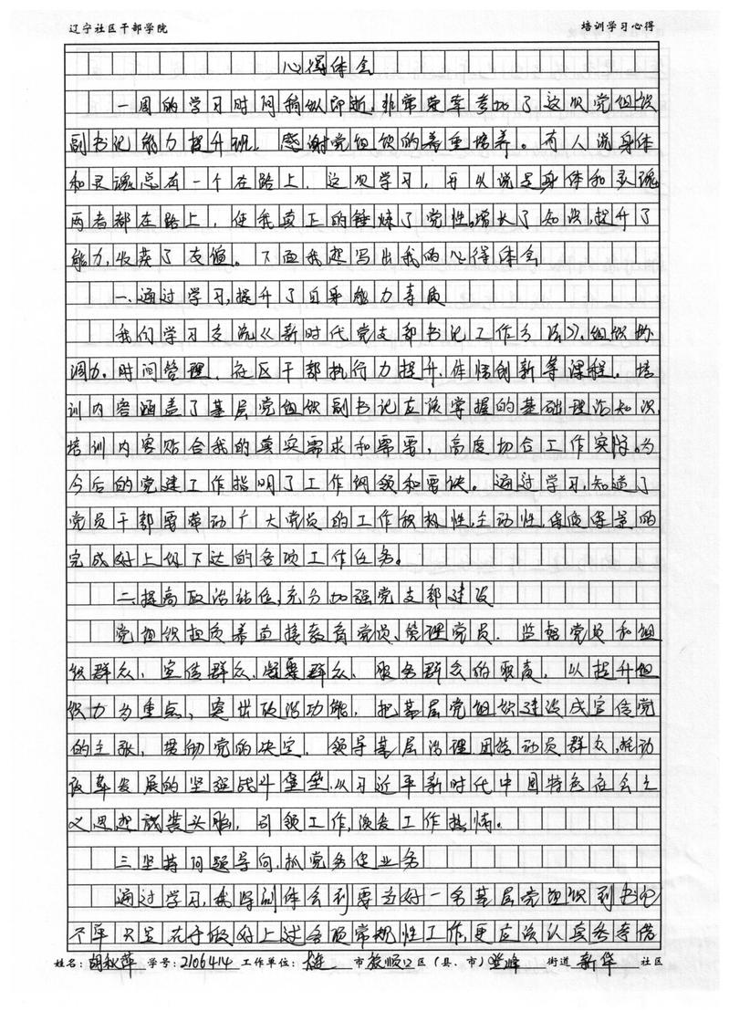 大连市旅顺口区登峰街道新华社区胡秋萍学习心得