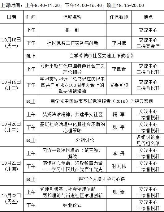2021年全省城乡社区党组织书记党建引领基层社会治理创新专题第十六期(总116期)培训班课程 安排