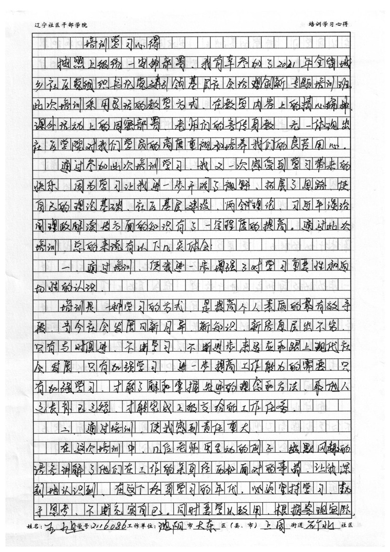沈阳市大东区上园街道矿北社区书记王旭学习心得