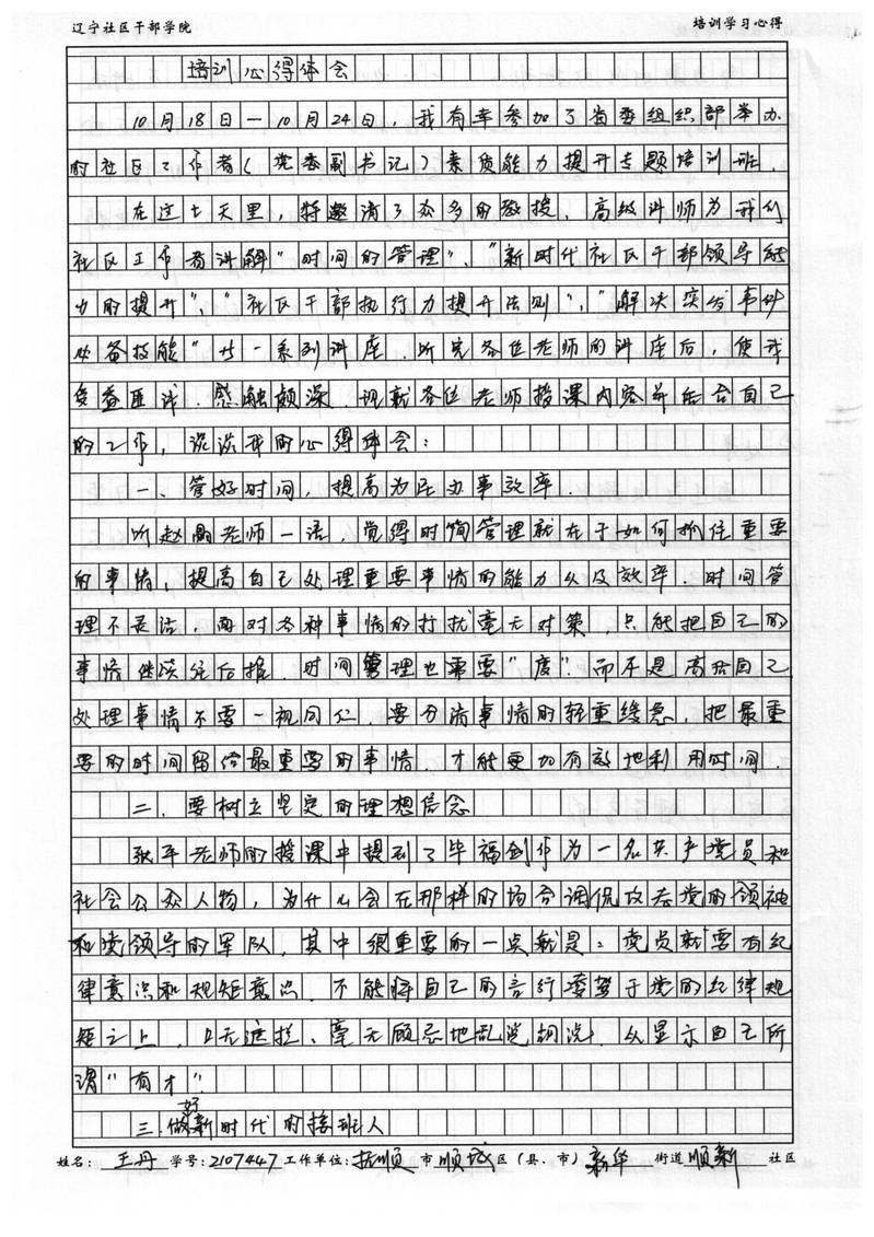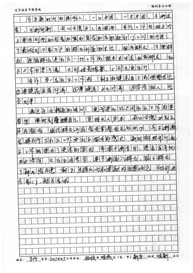 抚顺市顺城区新华街道顺新社区党委副书记王丹学习心得