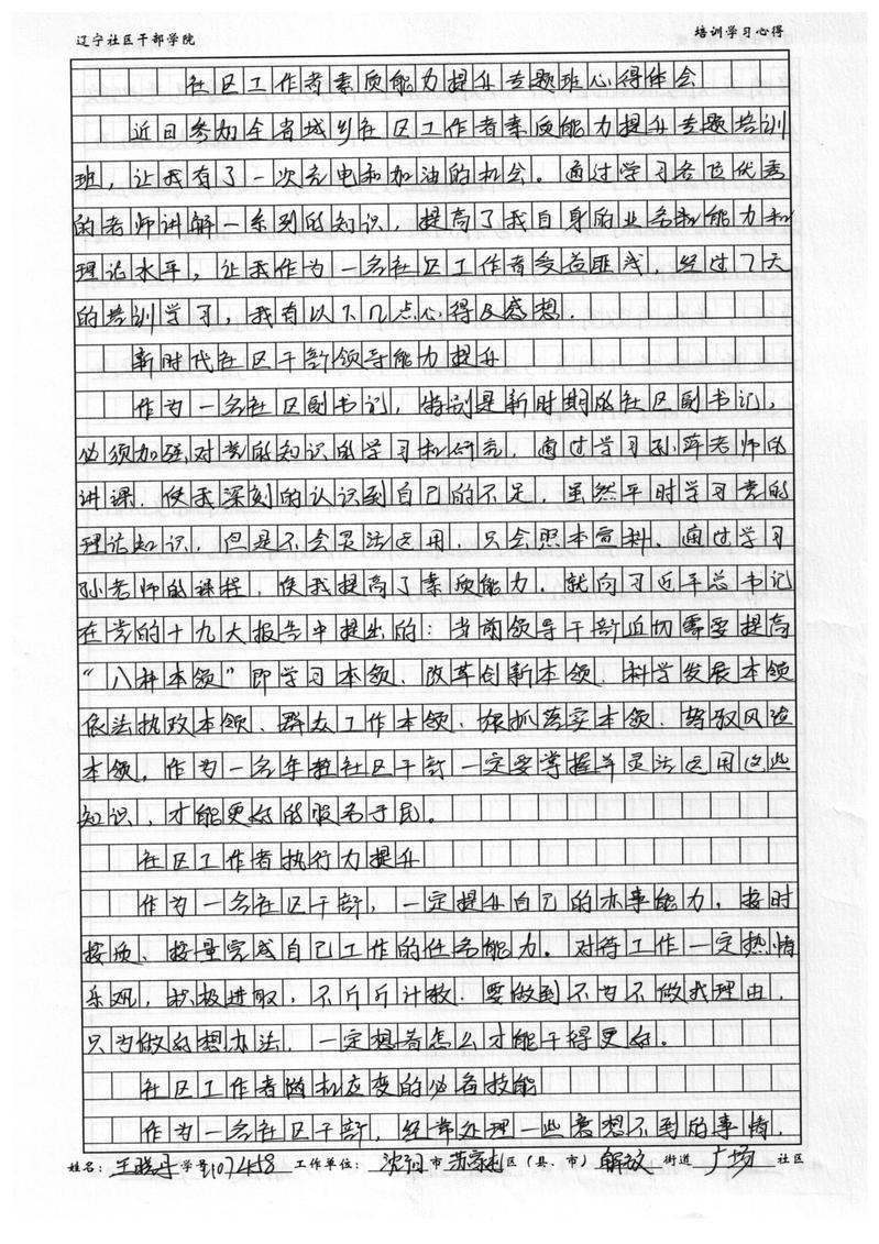 沈阳市苏家屯区解放街道广场社区副书记王晓丹学习心得