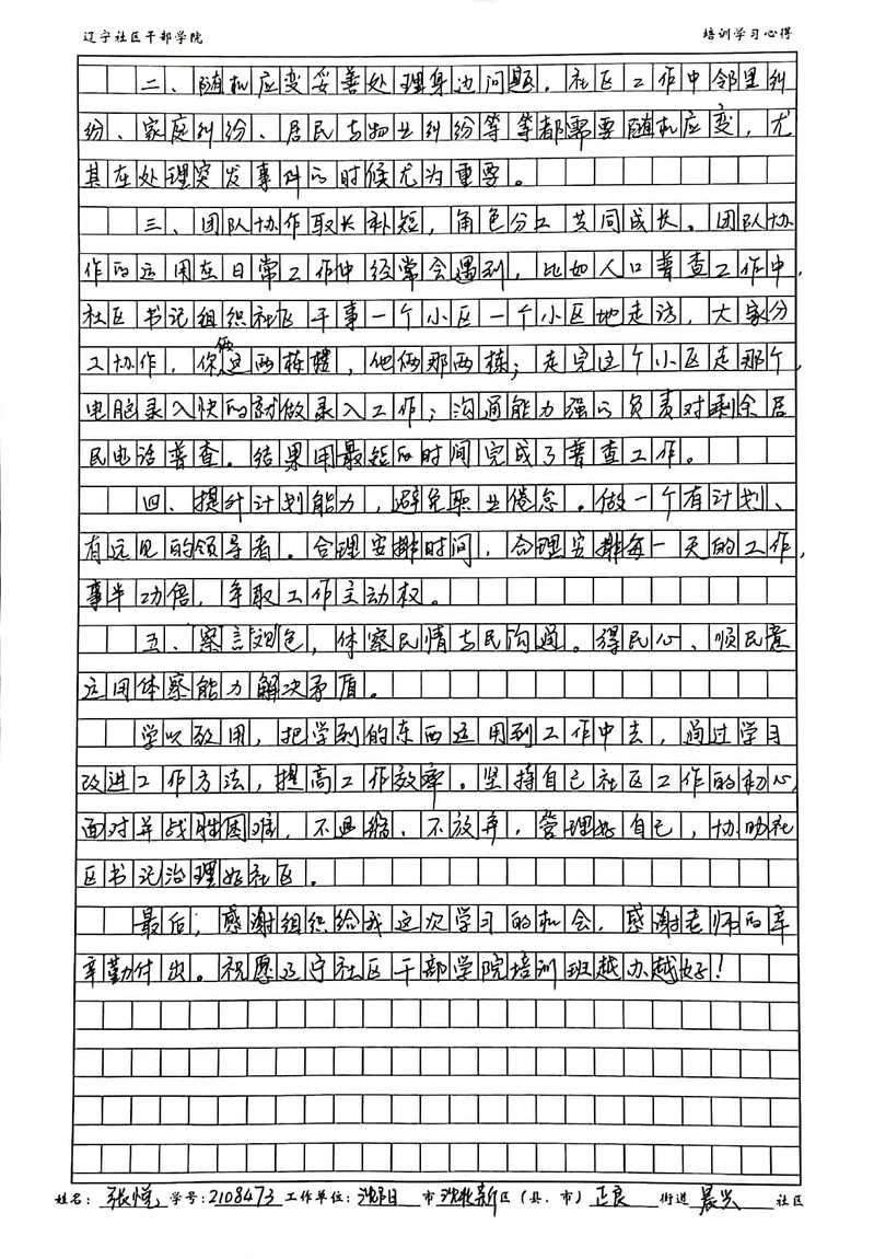 沈阳市沈北新区正良街道晨兴社区副书记张悦学习心得