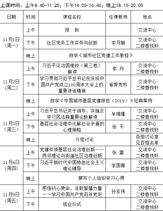 2021年全省城乡社区党组织书记党建引领基层社会治理创新专题第十八期(总118期)培训班课程 安排