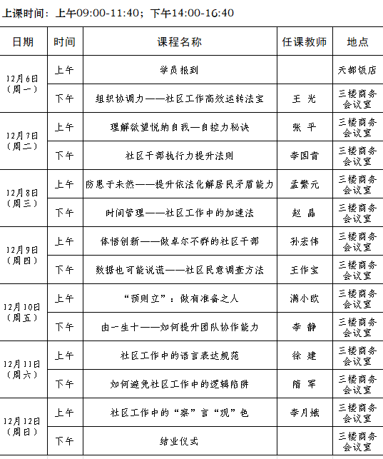 2021年全省城乡社区工作者(党组织副书记)素质能力提升专题培训班第十一期(总第92期)培训班课程安排