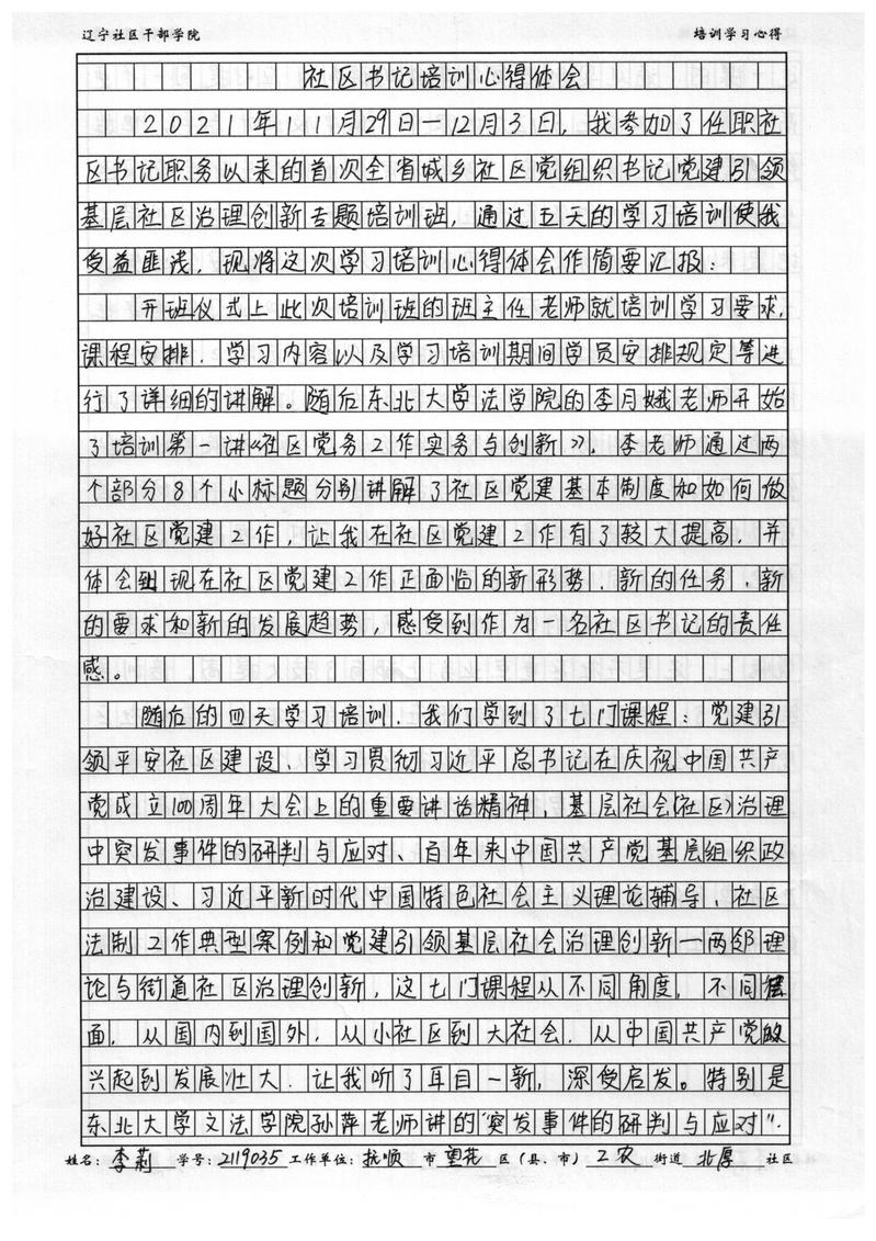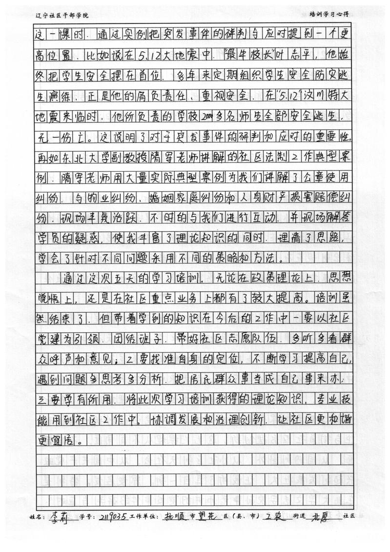 抚顺市望花区工农街道北厚社区书记李莉学习心得