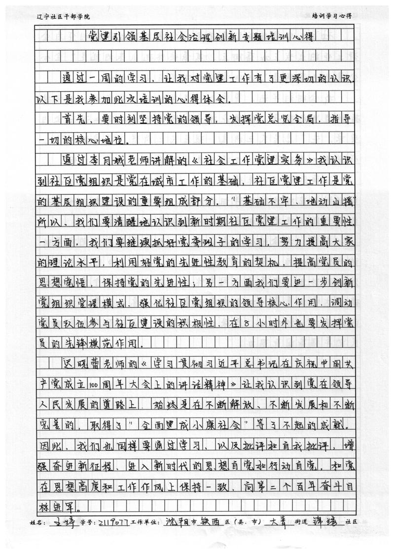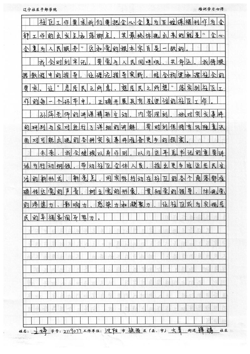 沈阳市铁西区大青街道锦绣社区书记王婷学习心得