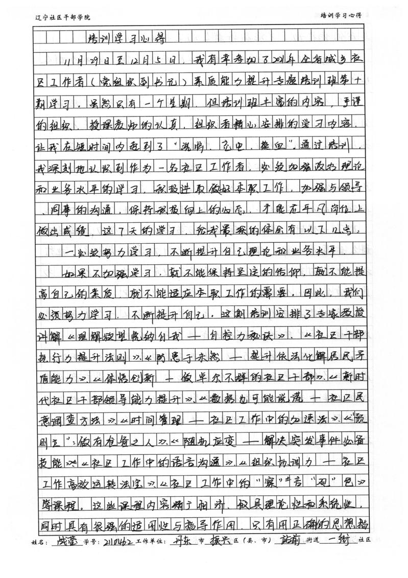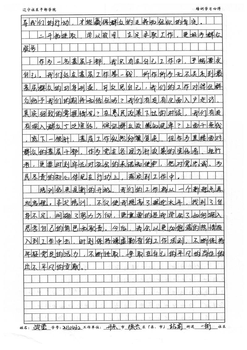 丹东市振兴区站前街道一街社区副书记战莹学习心得