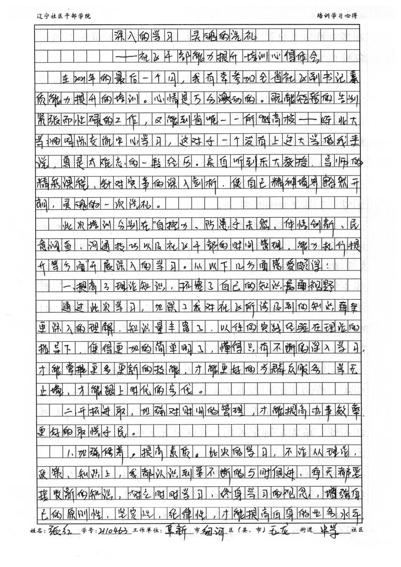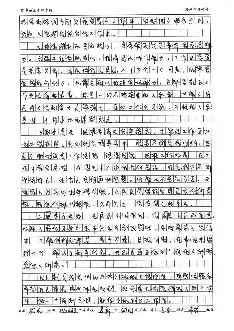 阜新市细河区玉龙街道中学社区副书记张红学习心得