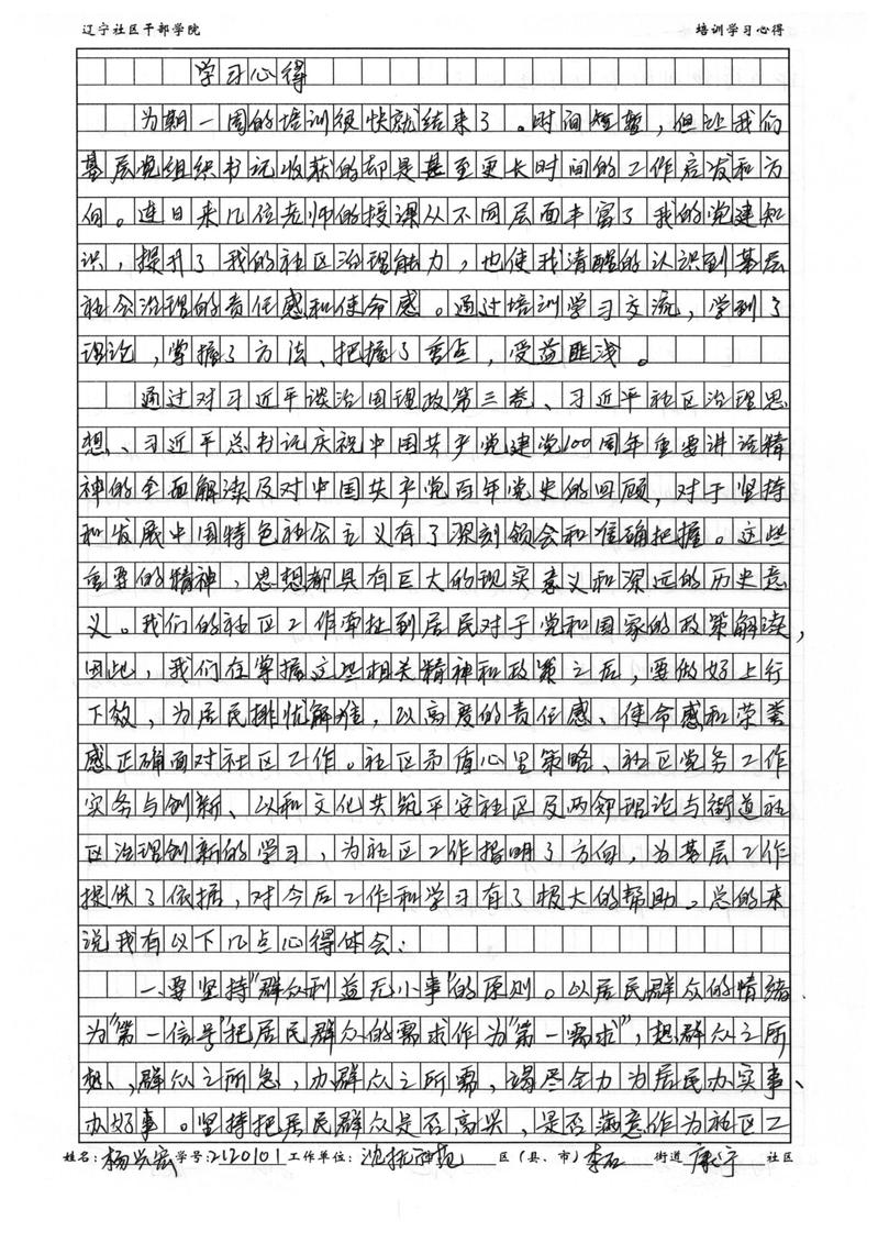 沈抚改革创新示范区李石街道康宁社区书记杨兴宏学习心得