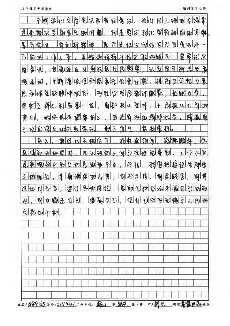 鞍山市铁东区新兴街道南麓世家社区副书记田舒雨学习心得