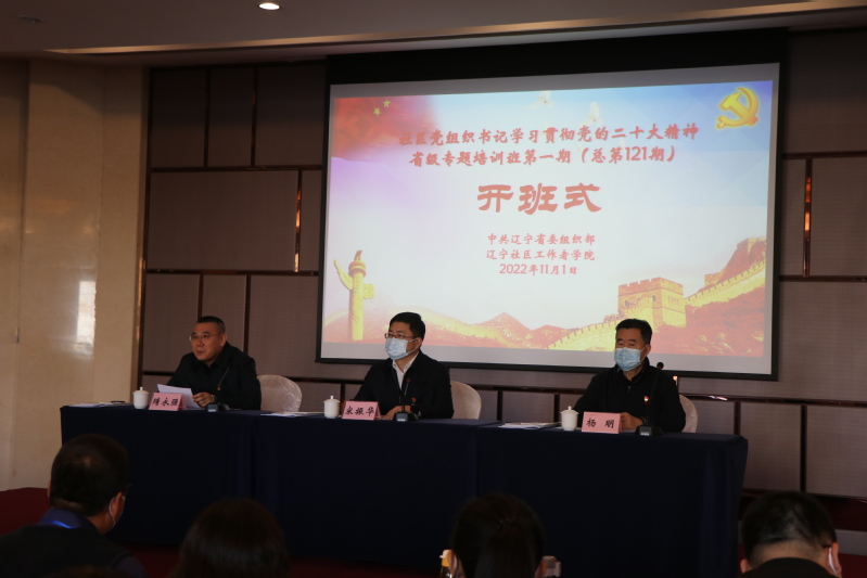11月1日,2022年社区党组织书记学习贯彻党的二十大精神省级专题培训班第一期(总第121期)在东北大学国际学术交流中心开班。开班式由辽宁社区工作者学院负责同志主持并致词,中共辽宁省委组织部负责同志作动员讲话,东北大学党委负责同志出席开班式。