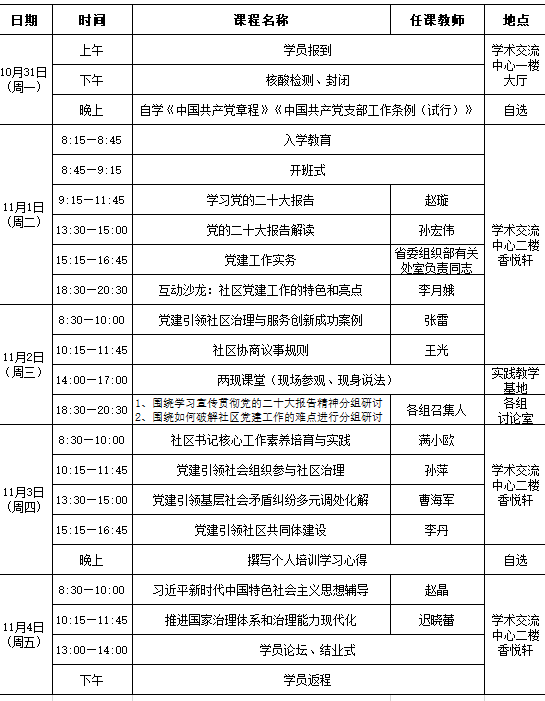 社区党组织书记学习贯彻党的二十大精神省级专题培训班第一期(总第121期)培训班课程安排