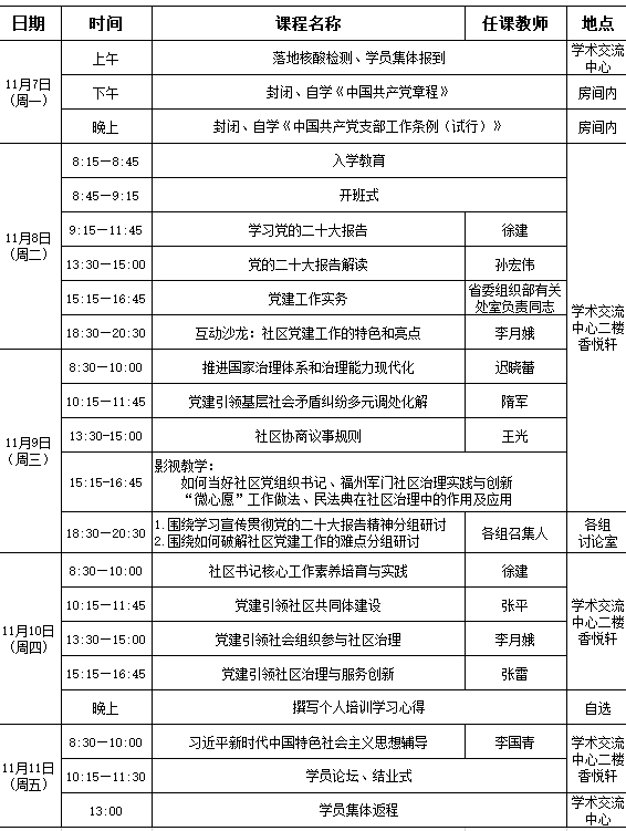 社区党组织书记学习贯彻党的二十大精神省级专题培训班第二期(总第122期)培训班课程安排