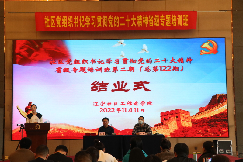 11月11日,社区党组织书记学习贯彻党的二十大精神省级专题培训班第二期(总第122期)结业式在东北大学国际学术交流中心举行,辽宁社区工作者学院相关负责同志参加了本次结业式。