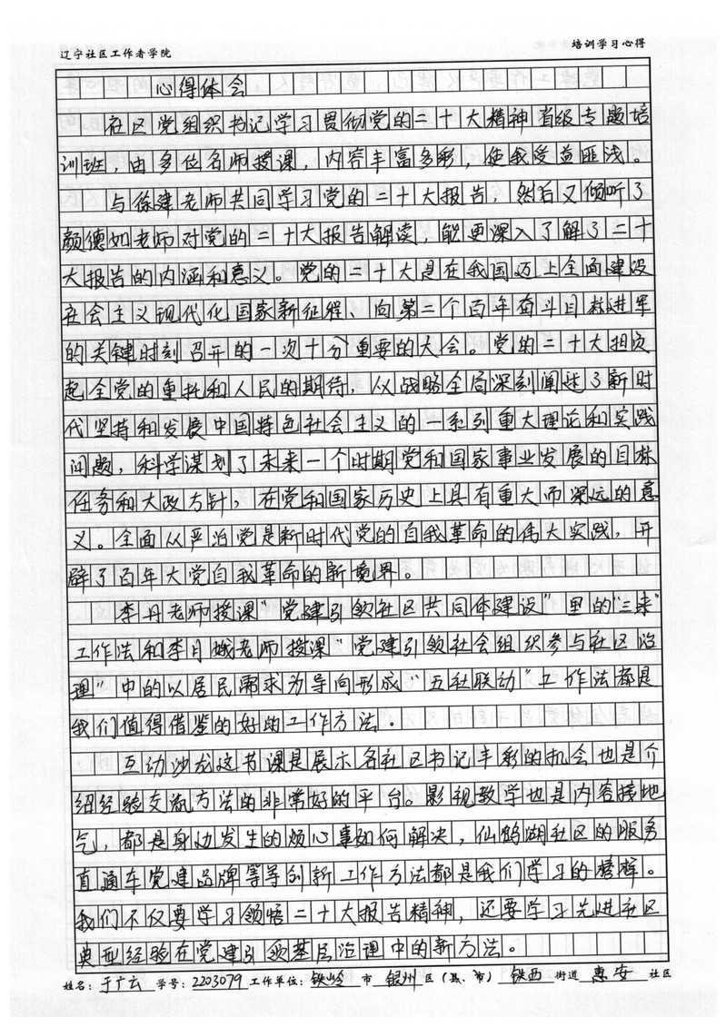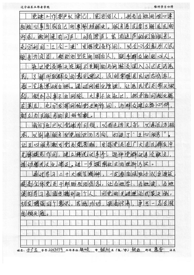 铁岭市银州区铁西街道惠安社区书记于广云学习心得