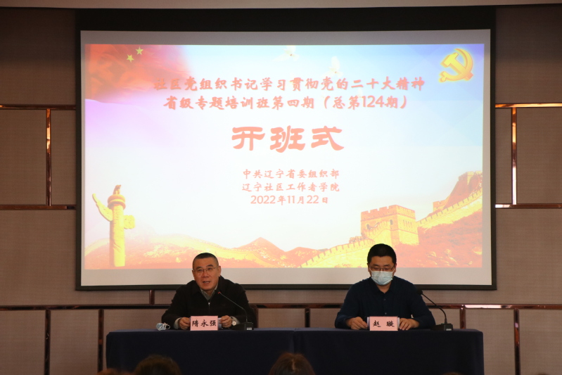 11月22日,2022年社区党组织书记学习贯彻党的二十大精神省级专题培训班第四期(总第124期)在东北大学国际学术交流中心开班。开班式由辽宁社区工作者学院负责同志主持并致词,辽宁社区工作者学院负责同志受中共辽宁省委组织部委托作开班动员讲话。