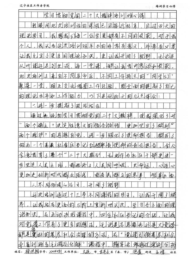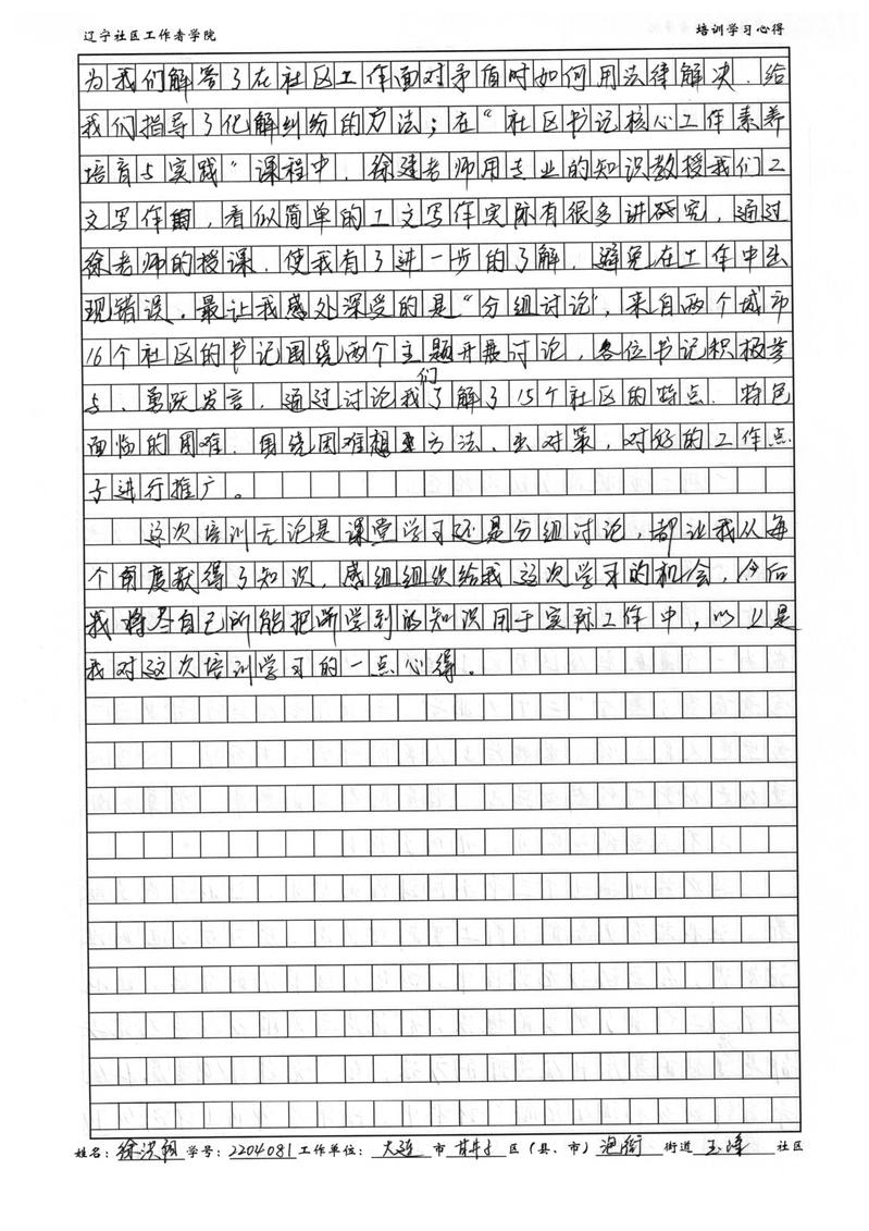 大连市甘井子区泡崖街道玉峰社区书记徐洪阳学习心得
