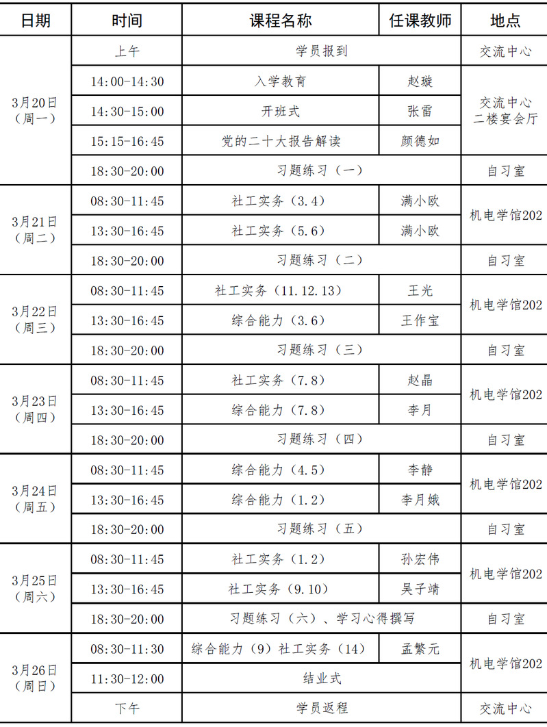 2023年全省城乡社区工作者队伍专业化职业化建设专题培训班第一期(总第53期)培训班课程安排