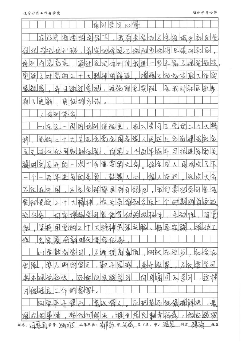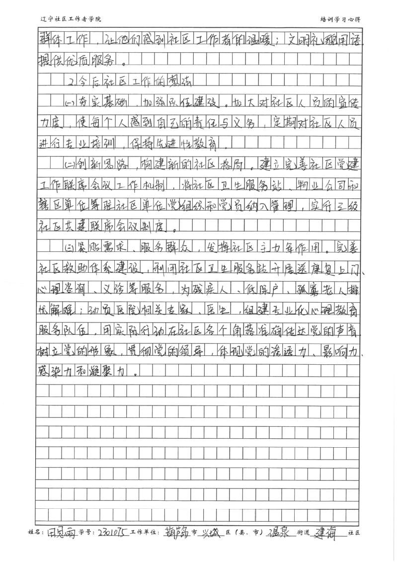 葫芦岛市兴城市温泉街道建海社区党委书记田思雨学习心得