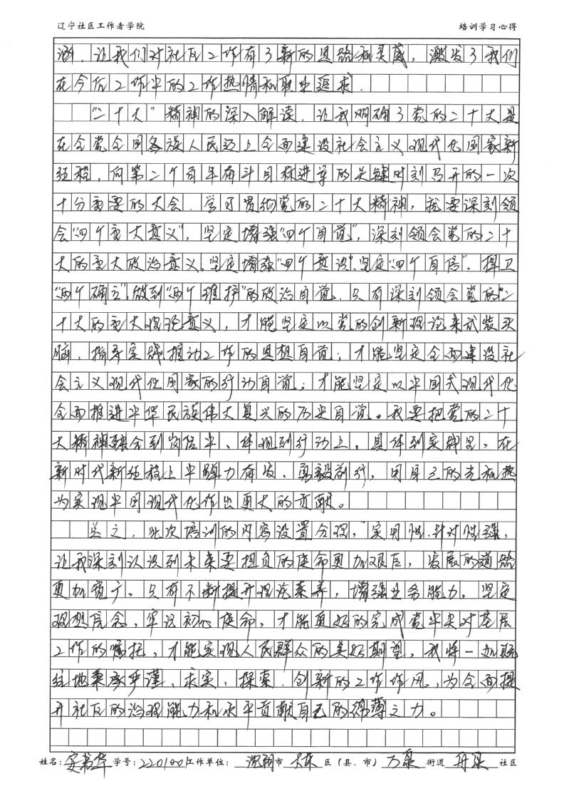 沈阳市大东区万泉街道舟泉社区书记安书华学习心得