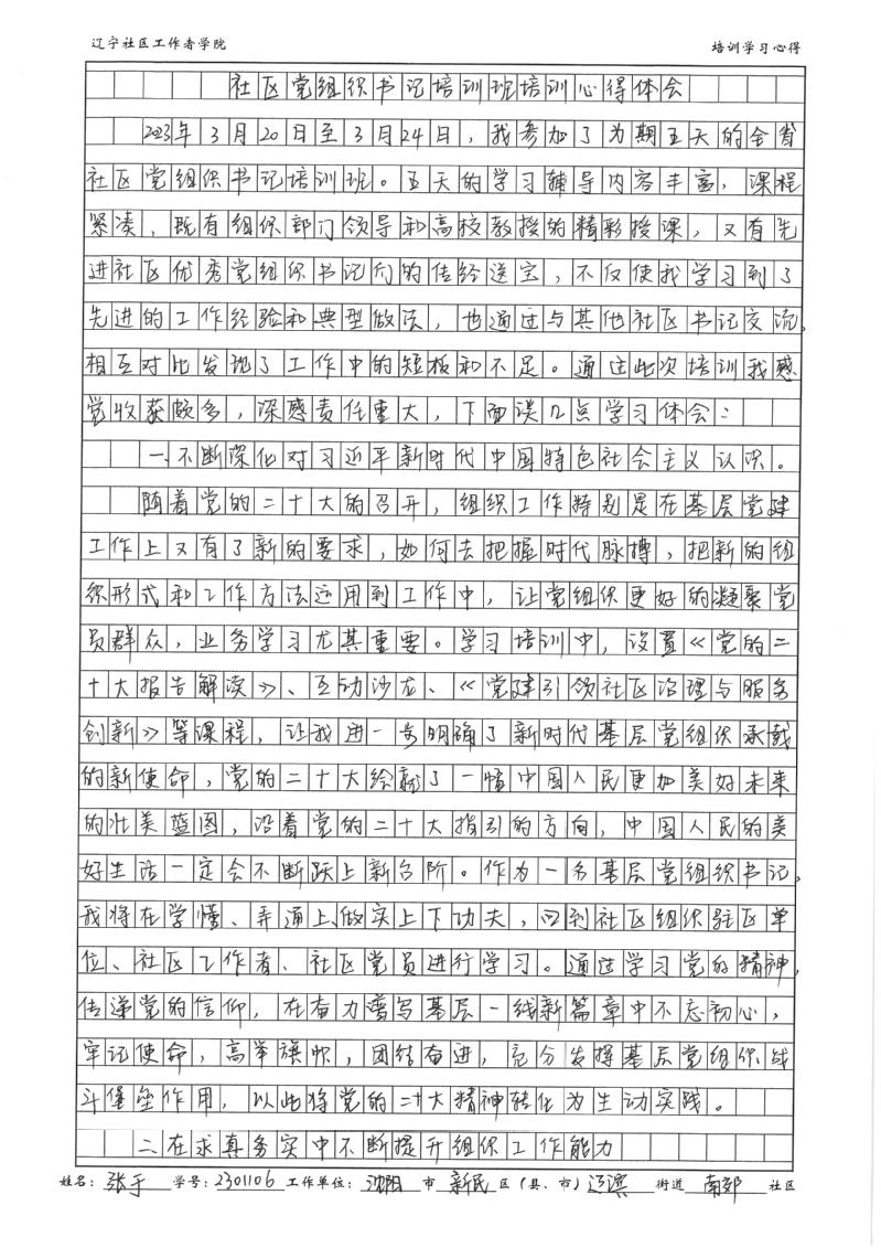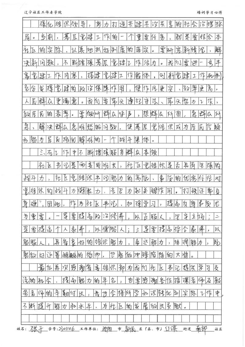 沈阳市新民市辽滨街道南郊社区书记张于学习心得