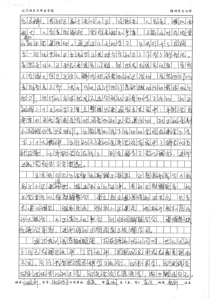 本溪市溪湖区东风街道彩新社区书记刘姣婷培训心得