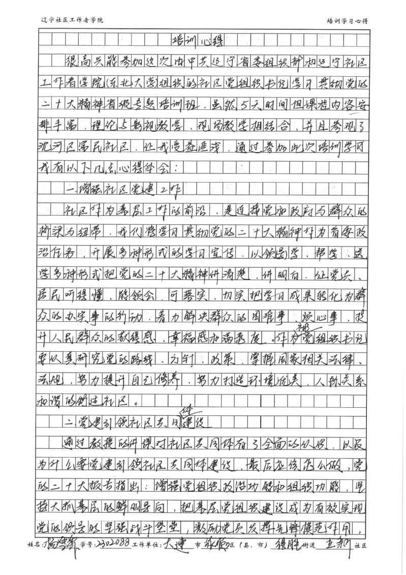 大连市旅顺口区得胜街道立新社区书记杨雪霏学习心得