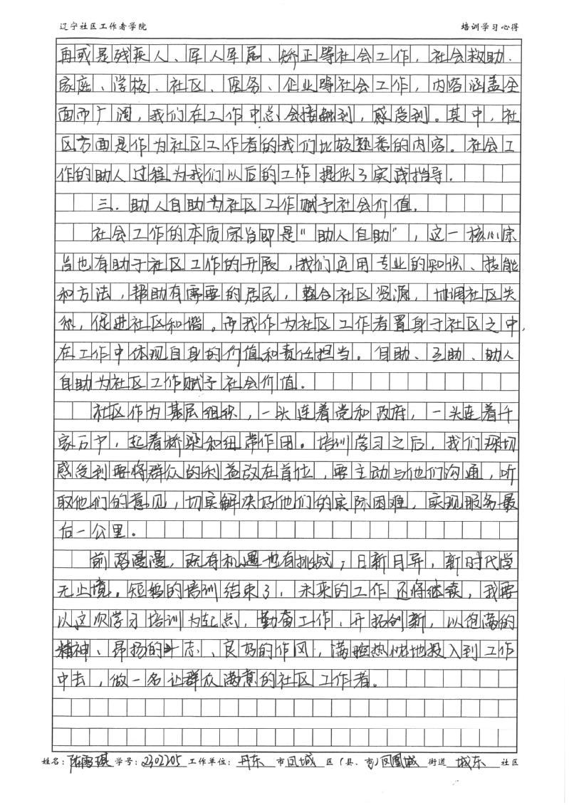丹东市凤城市凤凰城街道城东社区社区工作者陈雪琪学习心得