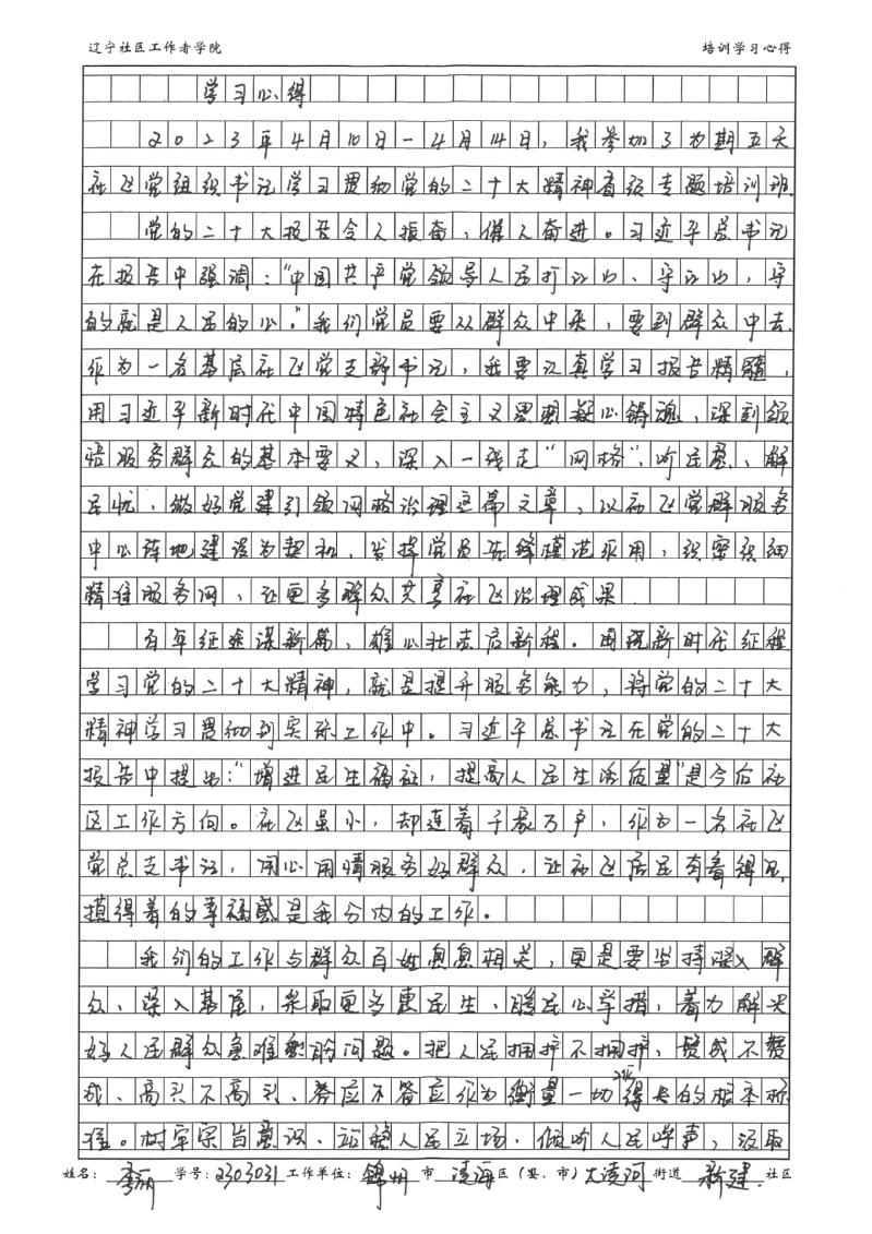 锦州市凌海市大凌河街道新建社区党总支书记李丽学习心得