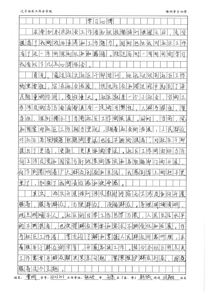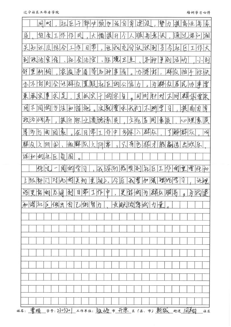 铁岭市开原市新城街道凤翔社区社区曹明学习心得
