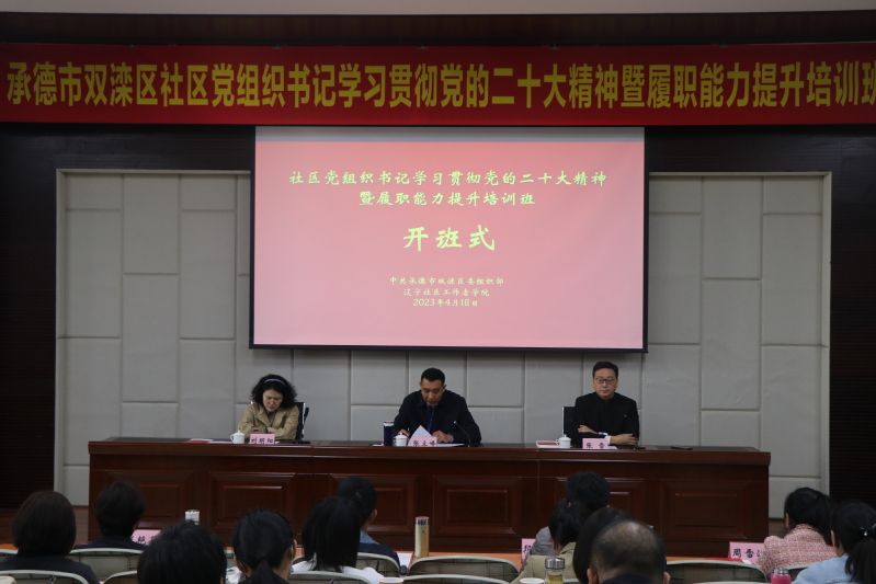 4月18日,承德市双滦区社区党组织书记学习贯彻党的二十大精神暨履职能力提升专题培训在辽宁社区工作者学院开班,开班式由辽宁社区工作者学院副院长、东北大学文法学院院长张雷同志主持并致词,中共承德市双滦区委常委、组织部部长张立峰同志作开班动员讲话。