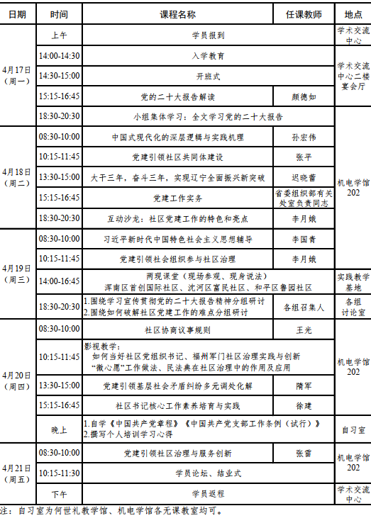 社区党组织书记学习贯彻党的二十大精神省级专题培训班第八期(总第128期)培训班课程安排
