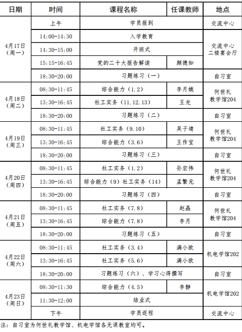 2023年全省城乡社区工作者队伍专业化职业化建设专题培训班第四期(总第56期)培训班课程安排