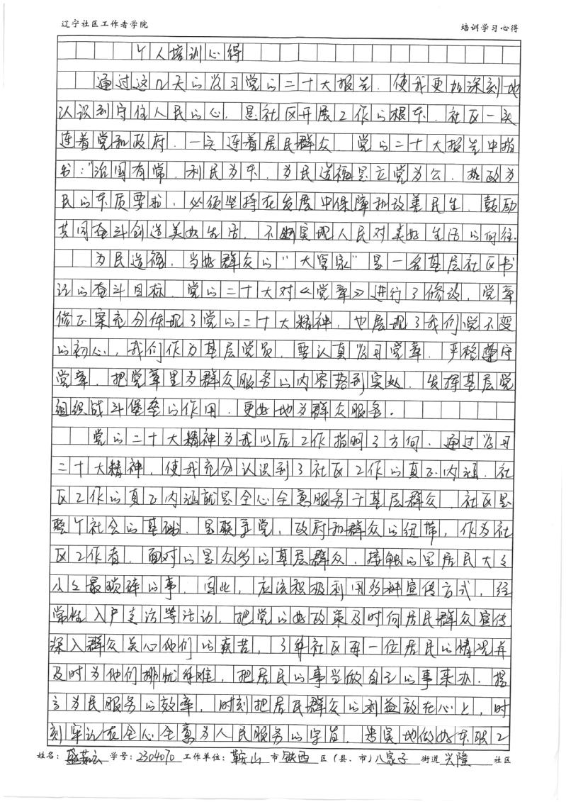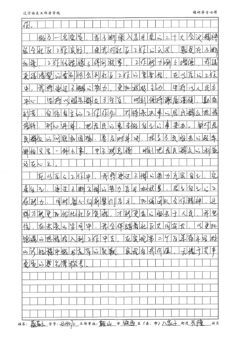 鞍山市铁西区八家子街道兴隆社区书记盛茹云学习心得