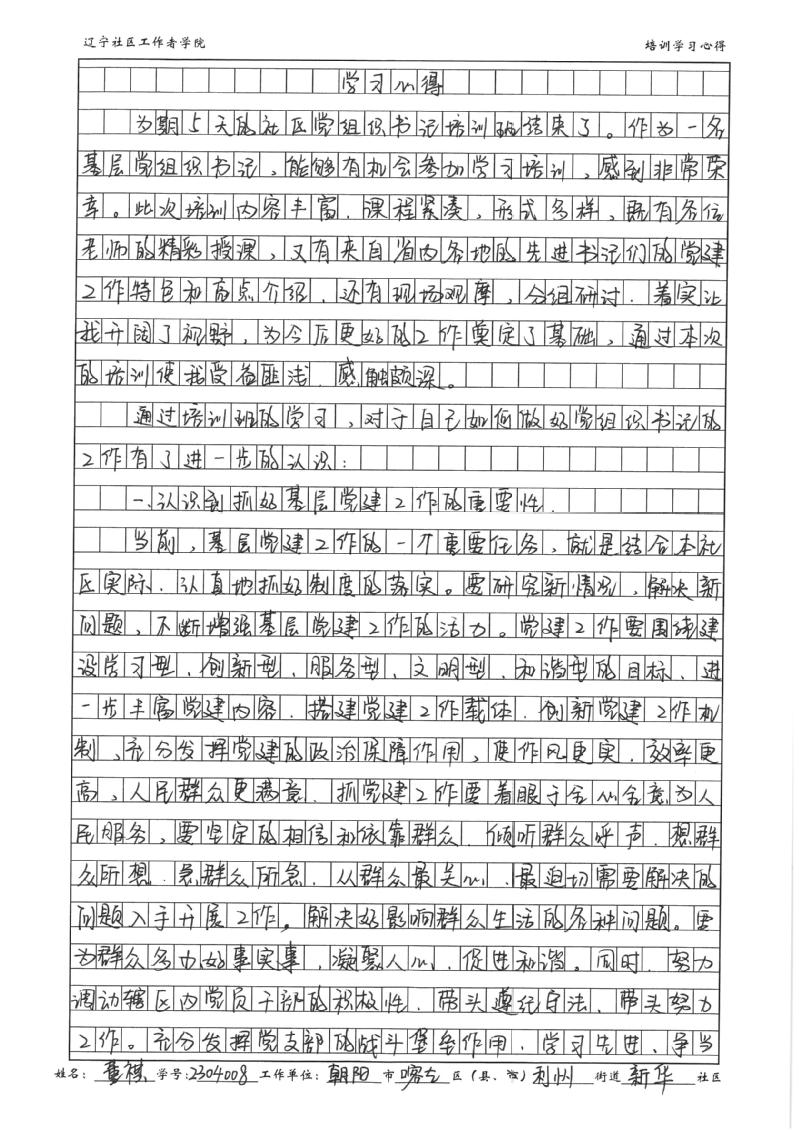 朝阳市喀左县利州街道新华社区书记董祺学习心得