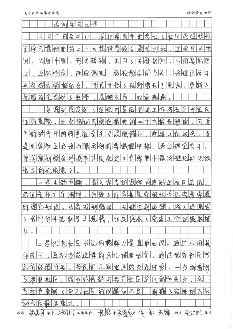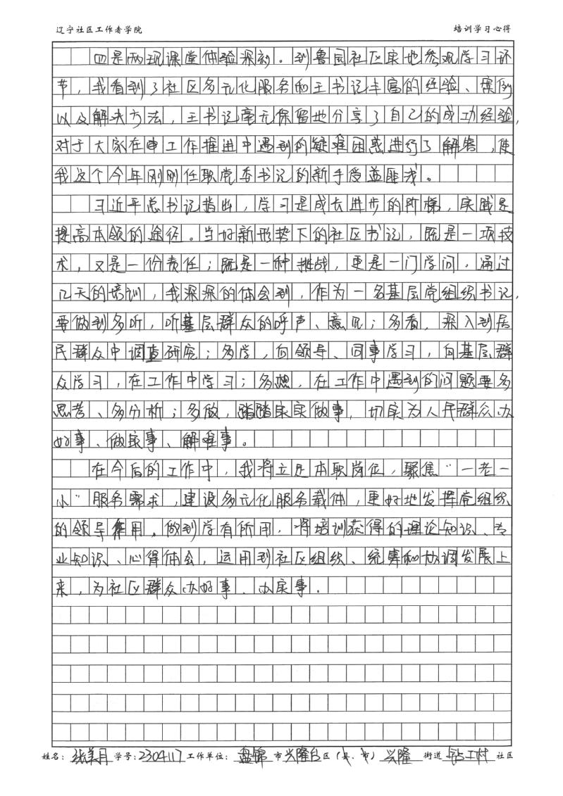 盘锦市兴隆台区兴隆街道钻工村社区书记张美月学习心得