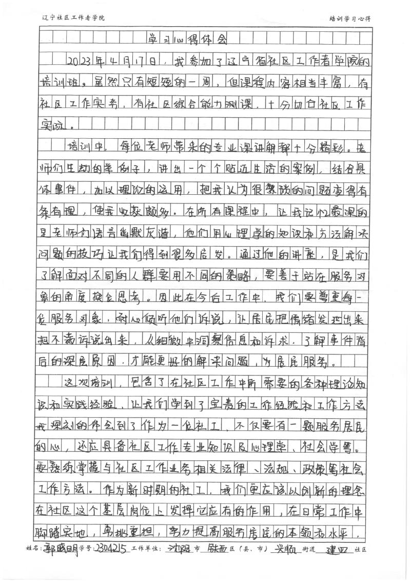 沈阳市铁西区兴顺街道建四社区书记郭晓明培训学习心得