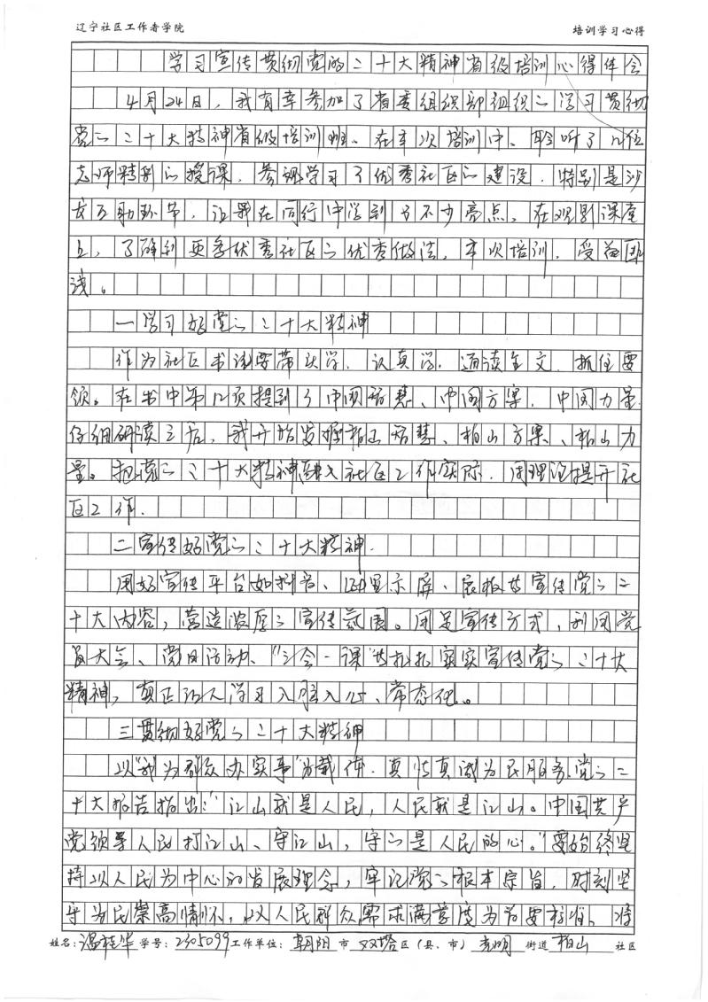 朝阳市双塔区光明街道柏山社区书记温桂华培训学习心得